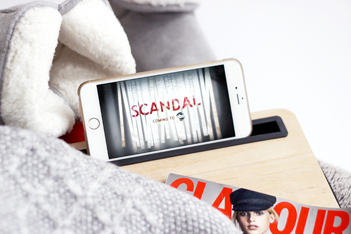 Une serie, un replay, une video YouTube… On déconnecte. Personnellement ma série du moment c’est Scandal. Pas un midi ou un couché sans mon petit épisode et j’adore.