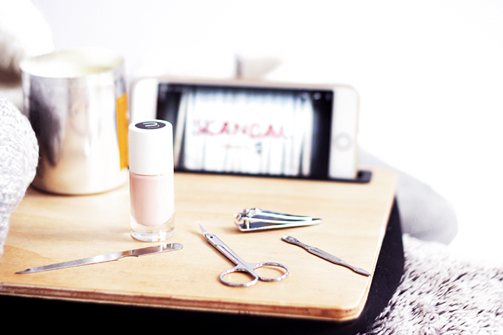 La semaine c’est la petite sieste de 20 minutes, le samedi c’est plus la pause coquette. On est pile poil dans le timing pour une manucure maison non ? Je n’y connais pas grand chose mais personnellement : je coupe, lime (5min), j’applique une base (4min), puis deux couches de vernis (6min) et je laisse sécher (20min) ! On a même 10min de plus si on souhaite faire le « truc à cuticules » ! Magique !