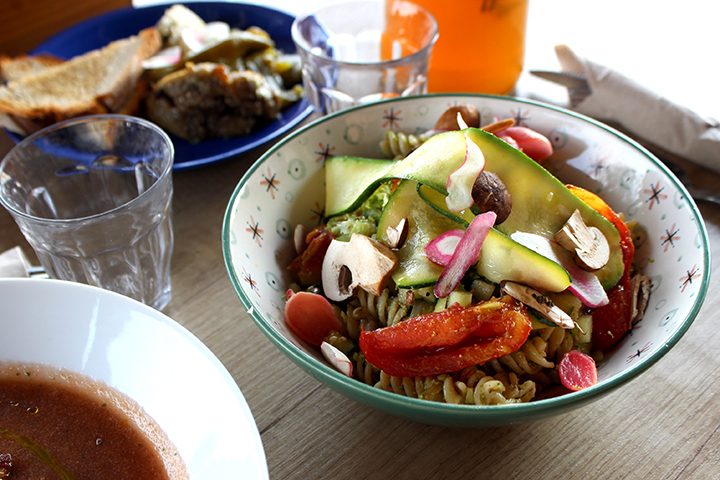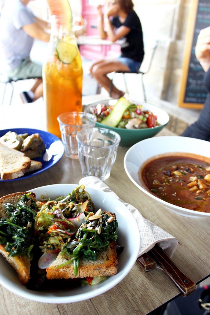 Sans vous mentir je n’aime pas vraiment les gaspachos normalement mais la… Plein d’épices, frais et savoureux, j’ai adoré. Le tout accompagné de petites tartines et d’une salade tout aussi délicieuse. A chaque bouchées que ce soit mon amie ou moi on n’a pas arrêté de dire « c’est bon », « hum », « j’adore »…