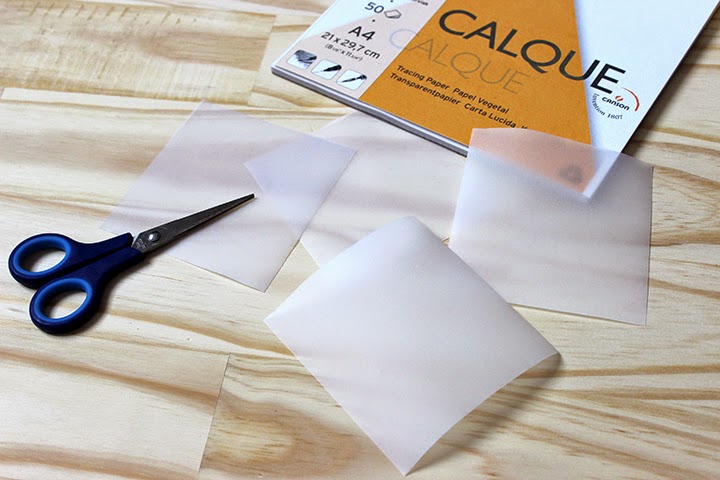 Découpez 50 carrés (ici 10cm par 10cm) de papier calque