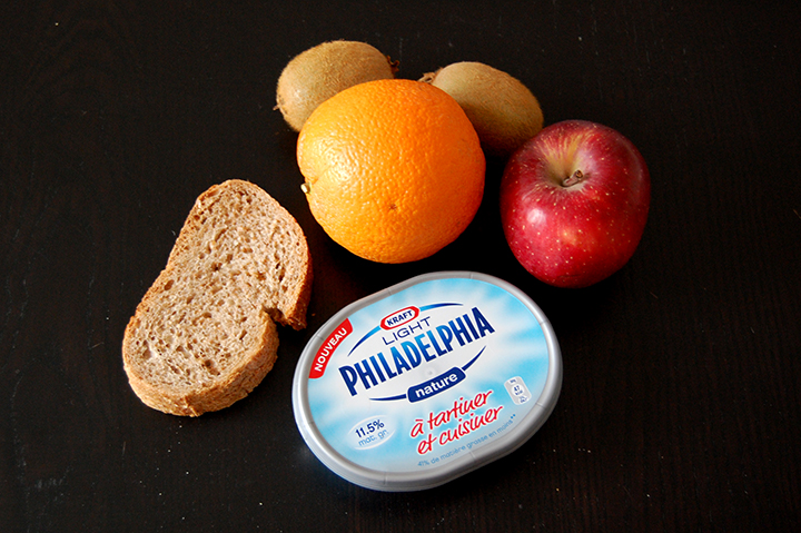 Dimanche en me réveillant j’étais donc partie pour me préparer une salade de fruits de saison quand en voyant le pain complet et mon pot de Philadelphia j’ai décidé de changer le menu et faire des Tartines Multi-Fruits.