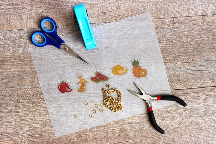 N’hésitez pas à vernir la face non-plastifiée à l’aide de verni en bombe (par exemple) pour que vos breloques résistent à l’eau.