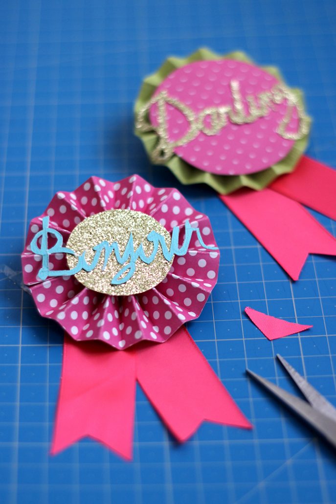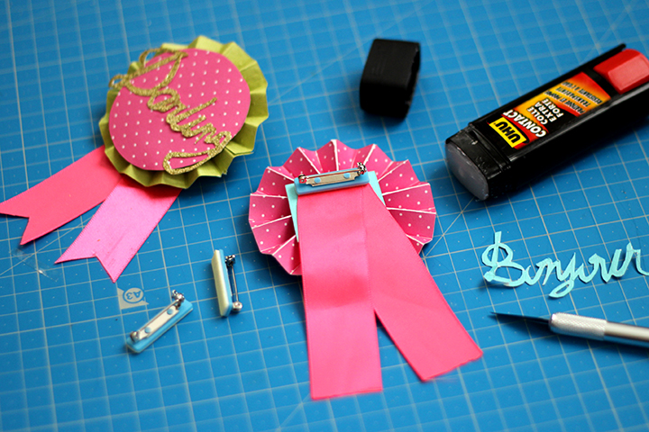 Agrafez le ruban à un bout de papier et collez le au dos de votre broche.