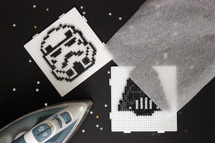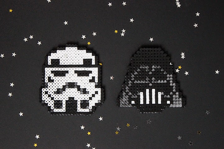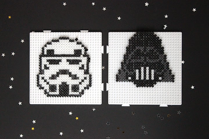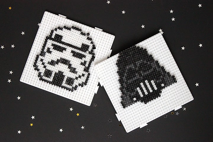 Ils siègent désormais sur ma cheminé. et sont super sympa ! C’est mon petit coté geek qui est ressorti aujourd’hui. Pour les réaliser vous aurez simplement besoin de perles hama noires, grises et blanches.