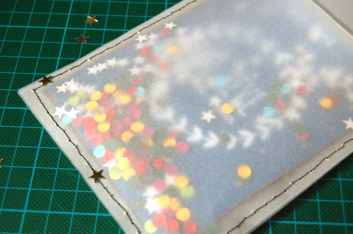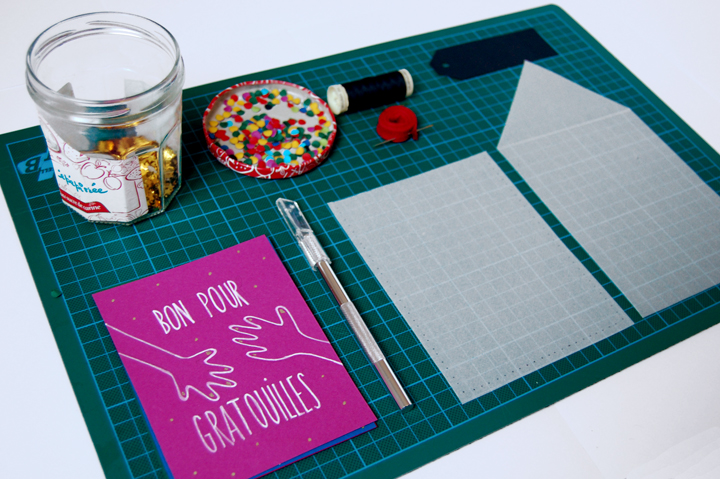 Une fois fait découpez un papier calque d’un centimetre de plus de coté en haut et en bas que vos cartes.