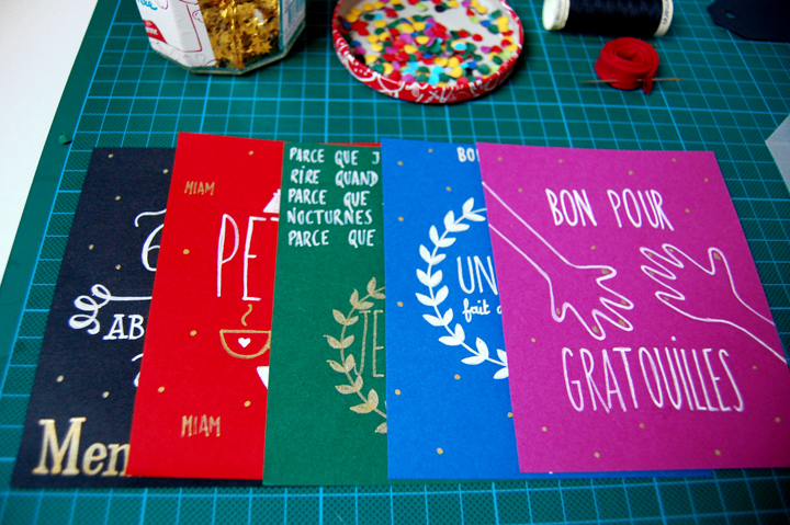 Je pense m'en inspirer pour un cadeau de Noël… Juste une petite question : comment as-tu fait pour décorer si joliment les cartes ? (police d'écriture et motifs décoratifs) Tu as tout fait de tes petites mains ? Le résultat me paraît si parfait… Je débute en DIY 😉