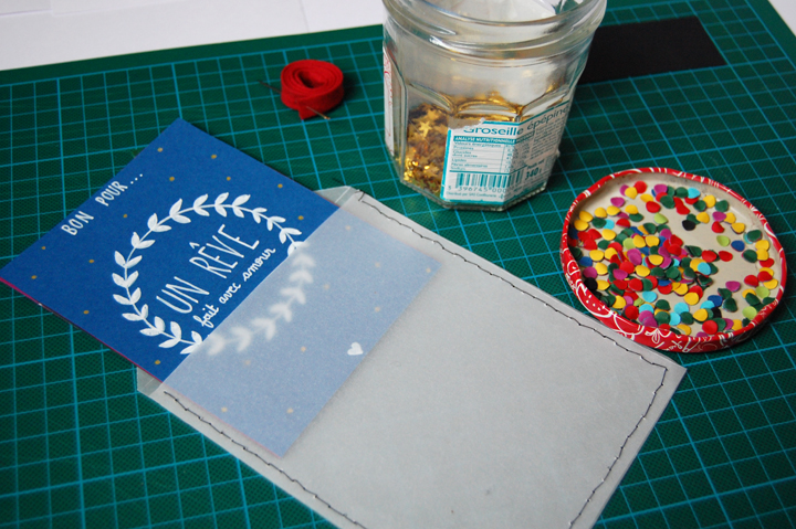 J’ai donc décidé de concevoir une jolie enveloppe cousue main, pleine de jolies choses et comme toujours faite avec amour.