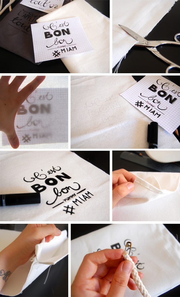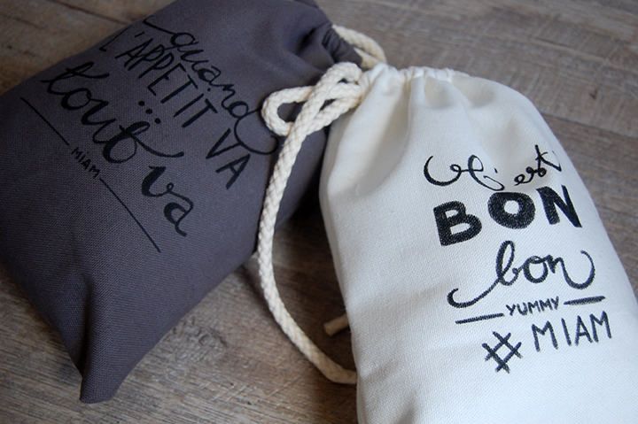 Pour ma part je les ai personnalisés avec un stylo à textile acheté chez Cultura.
