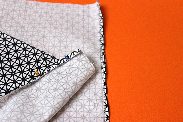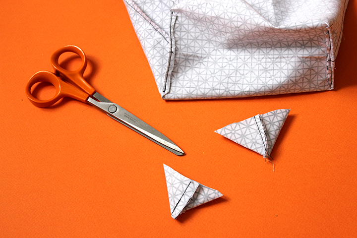 Coudre les deux coins puis découpez.