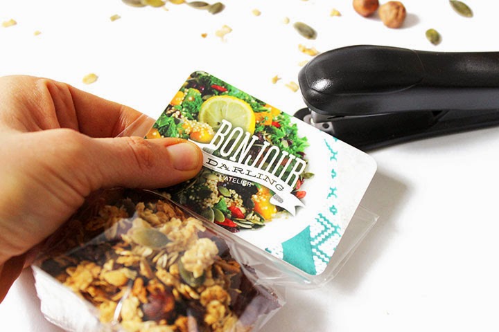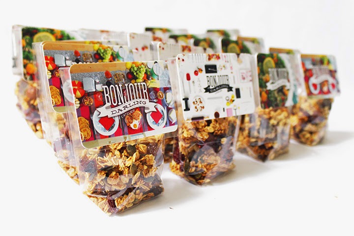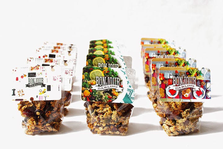 En attendant je vous propose un nouveau DIY ! Pour cet événement et pour apporter une petite touche « Bonjour Darling » j’ai décidé de préparer une petite pochette de granola pour chacun des invités. Pas moins de 4 fournées de granola et plus de 40 pochettes préparées avec amour.