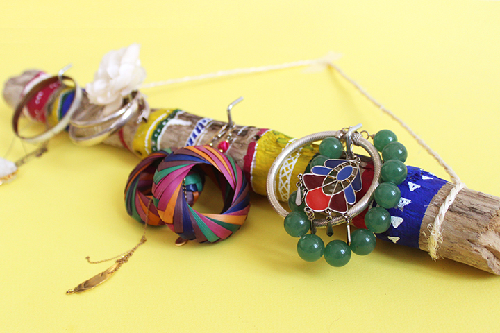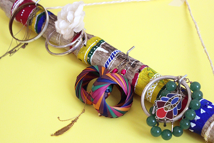 J’ai commencé par un joli porte bijoux coloré. Ce DIY vous demandera 1h max et le résultat est top !