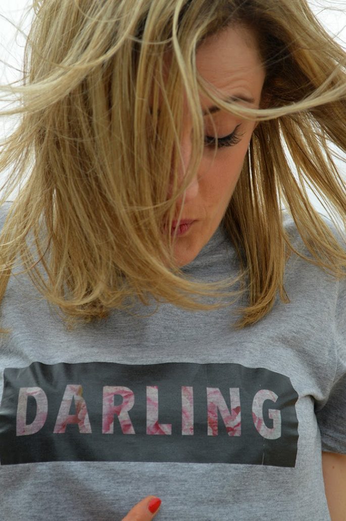 On les voit partout ! Ces Tshirts placardés d’un mot. J’avais flashé l’an dernier sur le Voyou de Edma puis petit à petit on les a vu repris partout. J’en voulais un mais avec le mot de mon choix… Tout naturellement j’ai choisi « DARLING ».
