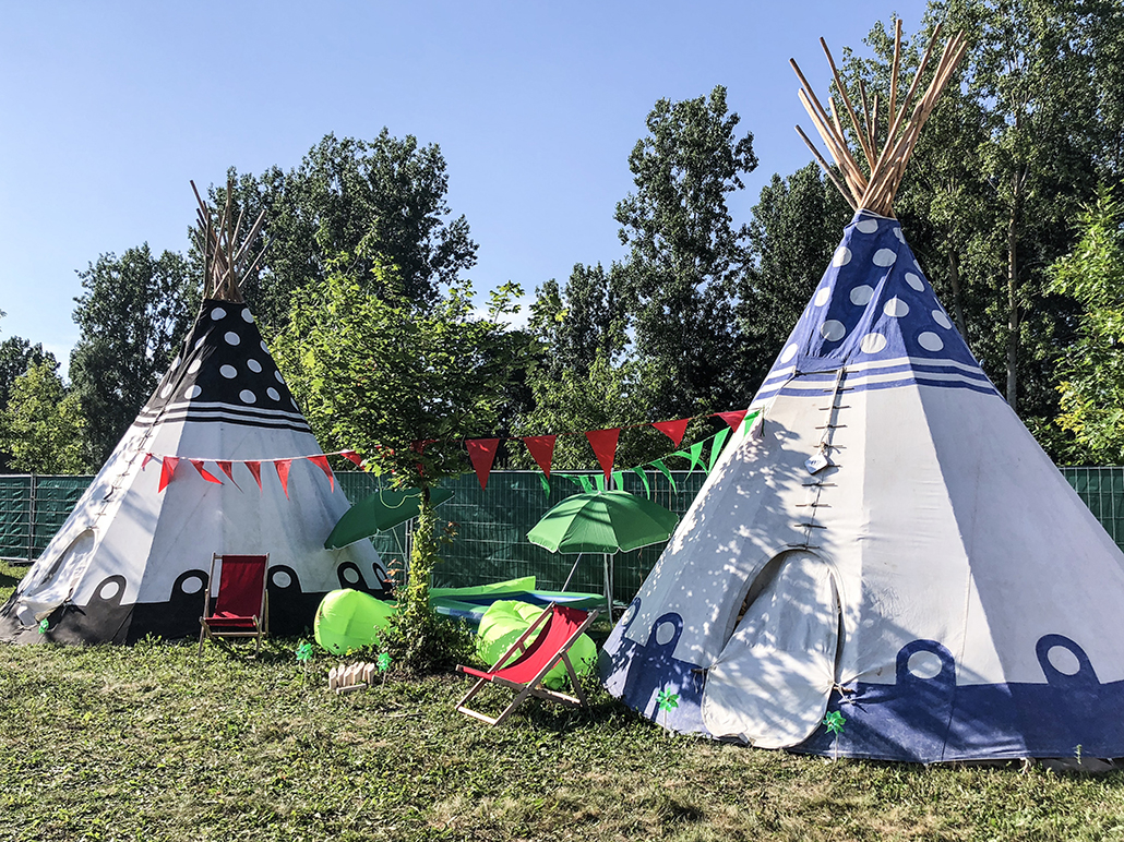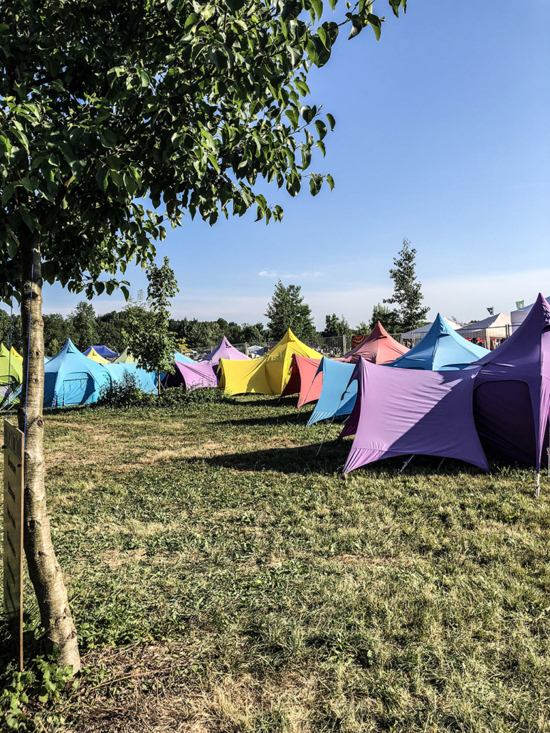 C’est le camping bling-bling : vigile, douches et sanitaires réservés, serviettes, matelas… En gros un hôtel version festival à 5 min de la zone de concerts. Tu as différents types de logement : tipis, tentes… Tu as même un espace cuisine et un « salon » pour charger ton téléphone.