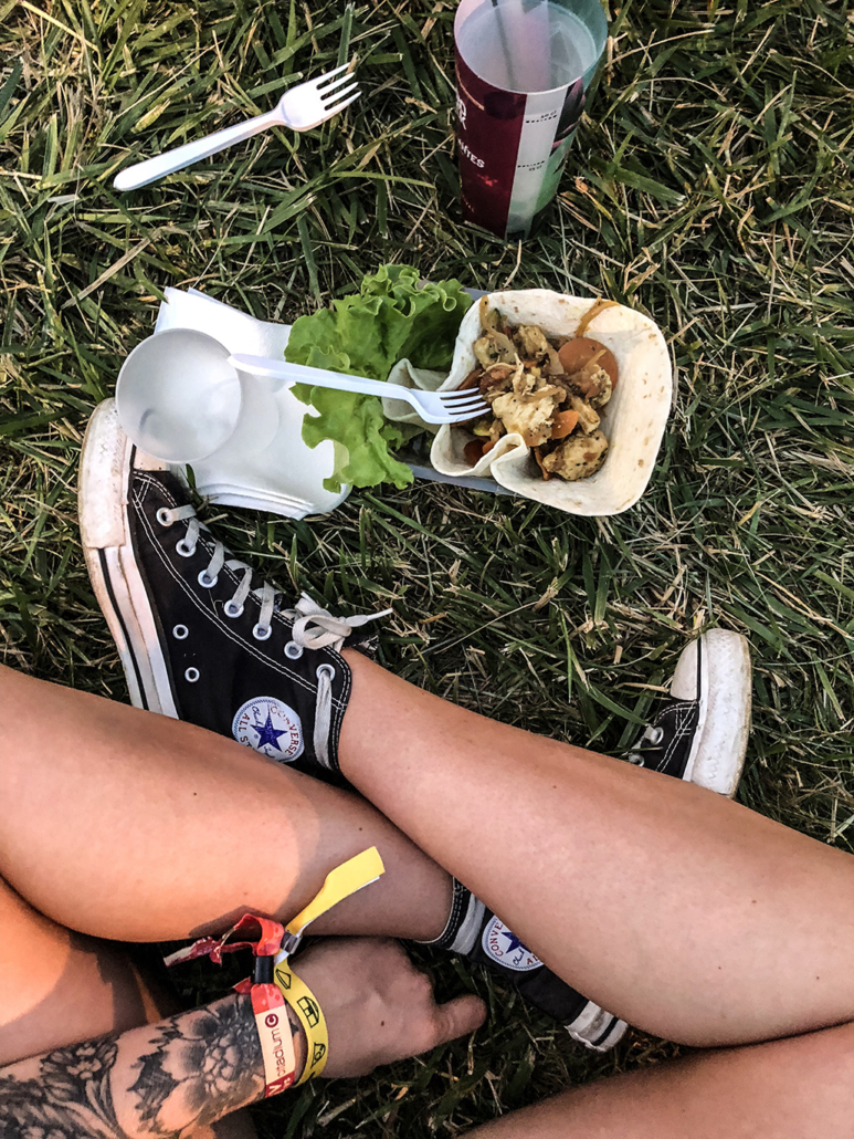 - Sur le camping ou le festival tu trouveras à manger et il y en a pour tous les gouts. Tu payes avec ton bracelet. Attention les prix sont assez élevés.