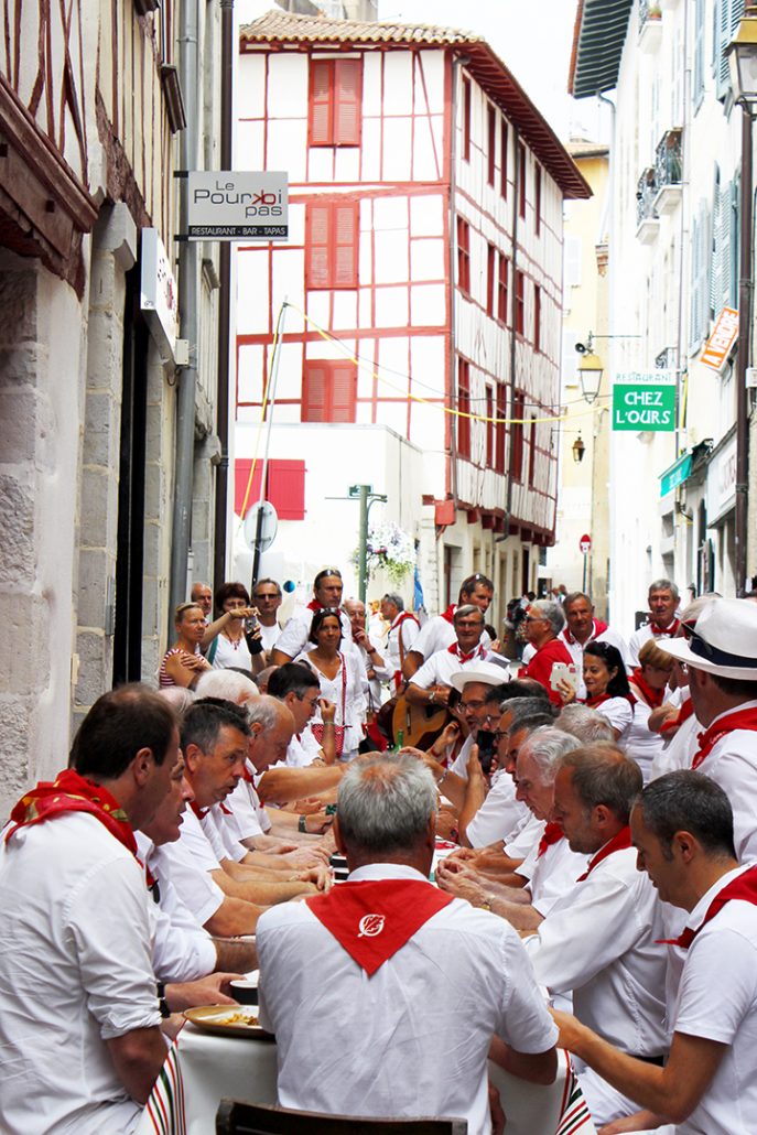 On est vendredi, il est 7h, je vous écris avant de partir ! C’est devenu un rituel. Chaque vendredi, à 11h, je retrouve mon papa, ses amis et mes amies pour un pique-nique ou chacun amène à boire et à manger. Je vous recommande vraiment de faire la journée et d’arriver le midi pour manger. Si vous n’avez pas prévu de pique-niquer vous trouverez facilement de quoi manger. De grandes tablées longent le long de la Nive en vous proposant des menus à moins de 20€ avec souvent de l’Axoa.