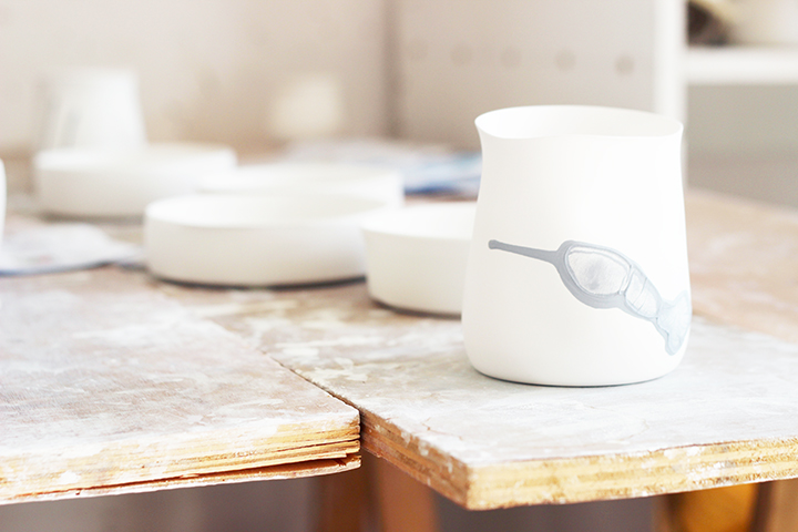 J’ai le plaisir d’avoir aujourd’hui une de ses créations chez moi, une petite tasse à café. Je ne saurai l’expliquer mais depuis je comprends vraiment ce qu’elle entend par « je veux la faire vivre » en parlant de la porcelaine ou de ses créations. Ma tasse est comme marquée, comme si elle avait vraiment une histoire, comme si c’était plus qu’une tasse.