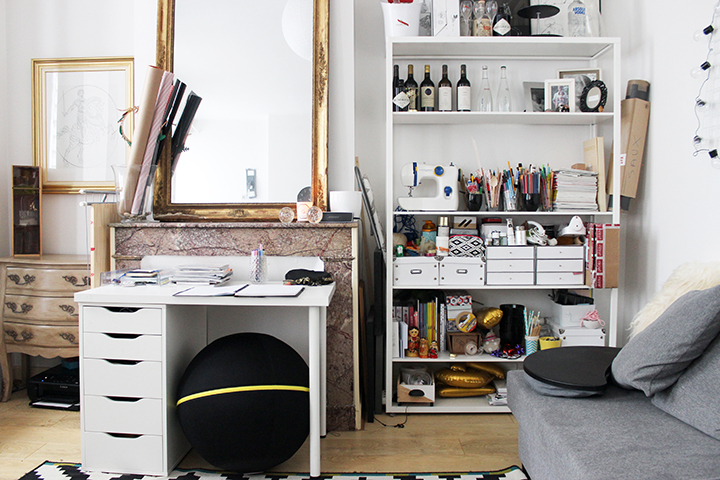 Vous me le demandez souvent sur Instagram et comme vous pouvez l’apercevoir ici, j’ai un Wellness Ball Technogym en guise de chaise de bureau. Il me permets de me tenir droite et peut aussi être un accessoire pour vos pratiques sportive à domicile. J’adore.