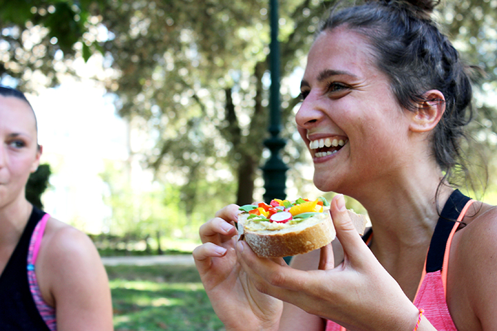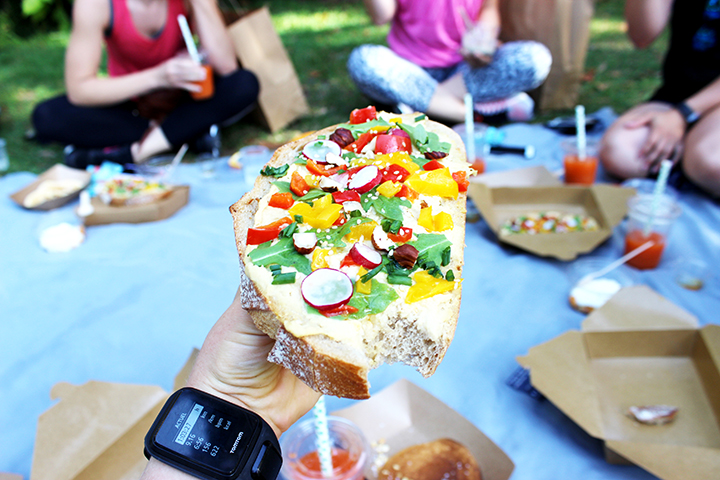 Après 9km de footing sous la cannicule, le brunch nous attendait au Jardin Public.