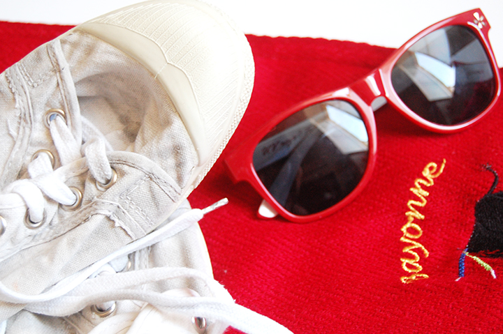 7. Mes Bensimon montantes blanches. Elles ont 4 ans de fêtes et résistent toujours. Les pieds sont mis à contribution car on marche, danse et on reste debout longtemps. A partir d’une certaine heure les rues de Bayonne ne sont plus très propre donc je protège mes chevilles.