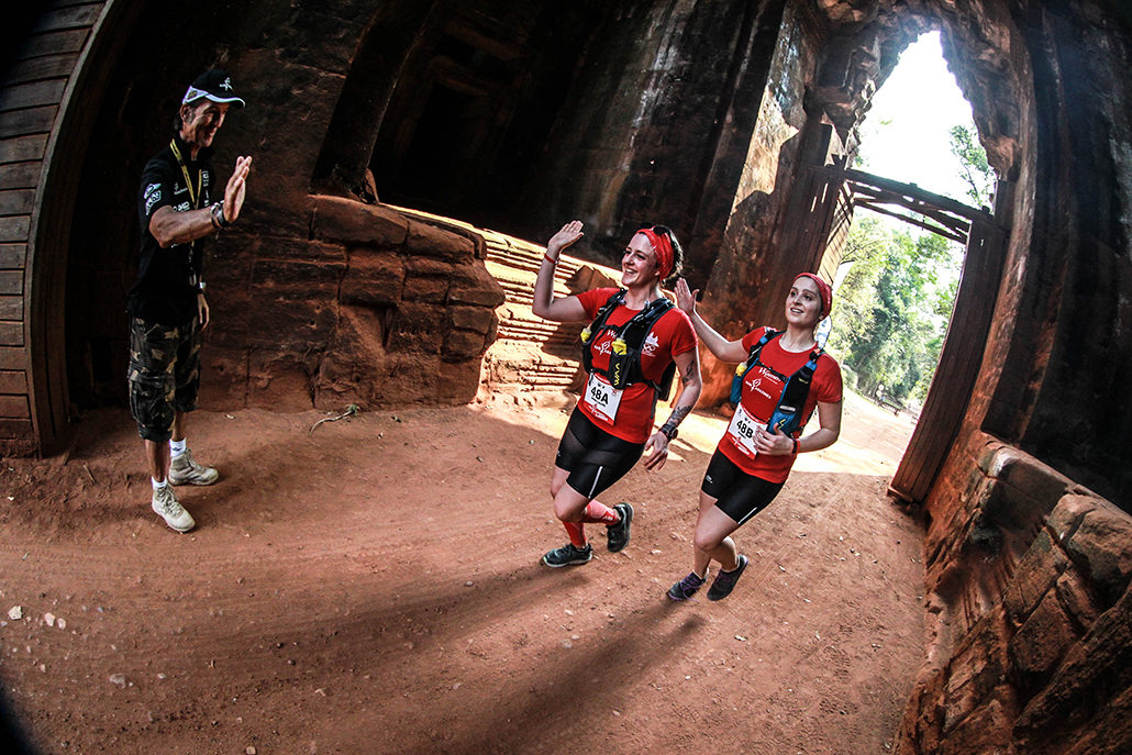 On petit-déjeune avant de prendre le bus. Une réception avec les officiels du Cambodge grâce à qui le Raid est possible et il est temps de prendre le départ. Audrey me fait confiance et je ferai tout pour qu’elle franchisse l’arrivée. Dès le début, on parcourt des paysages magnifiques. Dans les ruines des Temples d’Angkor. Un souvenir qui me met encore des frissons dans le ventre. On s’adapte l’une et l’autre. J’essaye de voir comment on peut vivre au mieux cette course. Mine de rien, on est à l’ombre tout le long, et même si la chaleur est présente malgré l’heure matinale, on n’a pas le soleil… Et c’est beau tellement beau.