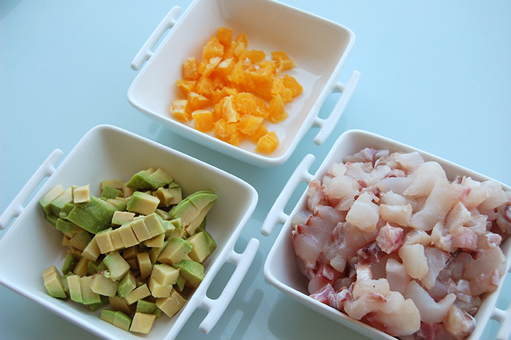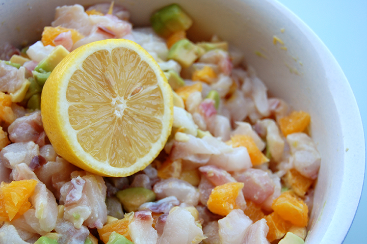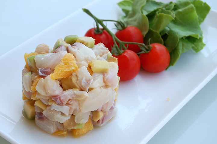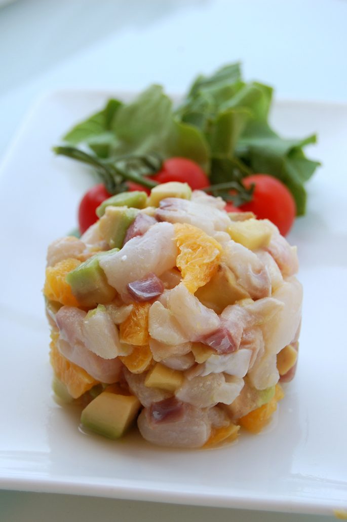 J’ai donc décidé de faire un Tatare vraiment frai et aux saveurs de la mer. On a alors pu gouter un tatare de daurade avec orange et avocat.