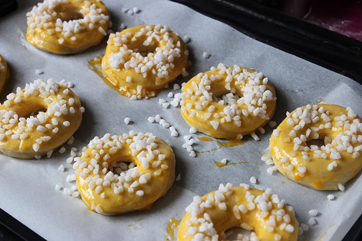 Déposez les donuts la plaque du four et laissez lever pendant 1h30 à température ambiante.
