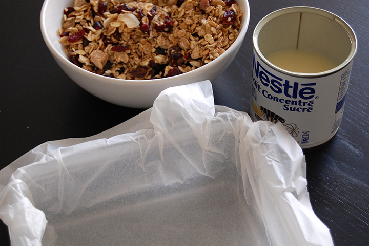 J'adore faire des barres de céréales, mais je n'avais jamais pensé au lait concentré, très bonne idée, je note ! Les photos sont jolies, ça donne faim !