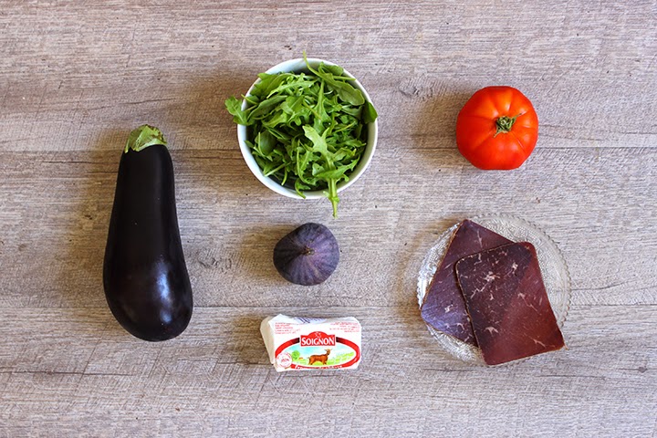 Préparez les garnitures en coupant la viande de grison, le chèvre, la tomate et la figue.