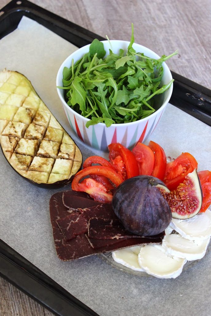 Le petit plus de cette « tartine » c’est qu’elle n’est pas sur une tranche de pain… Mais sur une demi-aubergine ! C’est un vrai délice pour profiter encore un peu de l’été tout en légèreté.