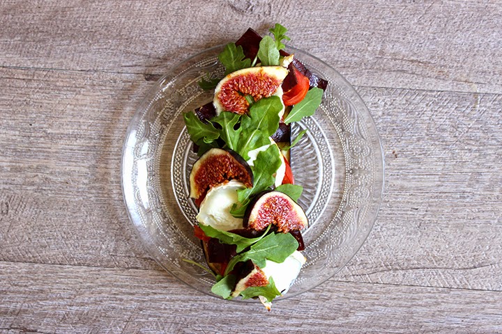 Sortez du four et ajoutez la roquette et les figues.