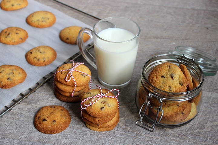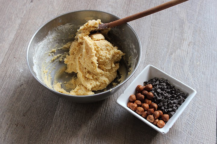 J’ai eu besoin de réconfort cette semaine et j’avais envie de Cookies ! Des cookies tout simples, chocolat / noisette. Ni une ni deux jeudi matin je les ai fait. J’en ai fait tellement que je les ai apporté à mon amie Bonie qui les a adoré.