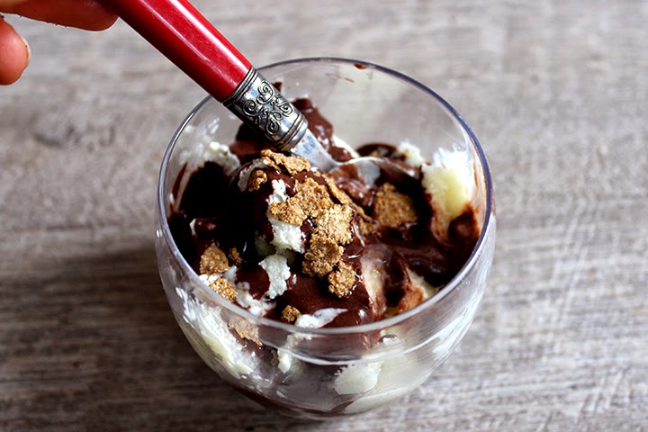 Le week-end dernier j’avais donc envie d’une glace simple, un peu comme un sundae. Ayant un congélateur pour la première fois de ma vie avec mon nouvel appartement j’ai décidé de tester la glace maison sans sorbetière. Oui mais une glace légère ! Oui oui c’est possible !