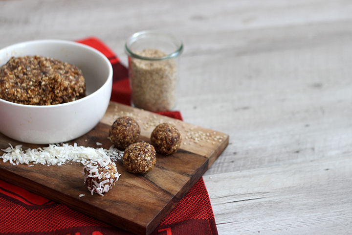 - Roulez les dans les graines de sésame et/ou le cacao 100% et/ou les noix de coco.