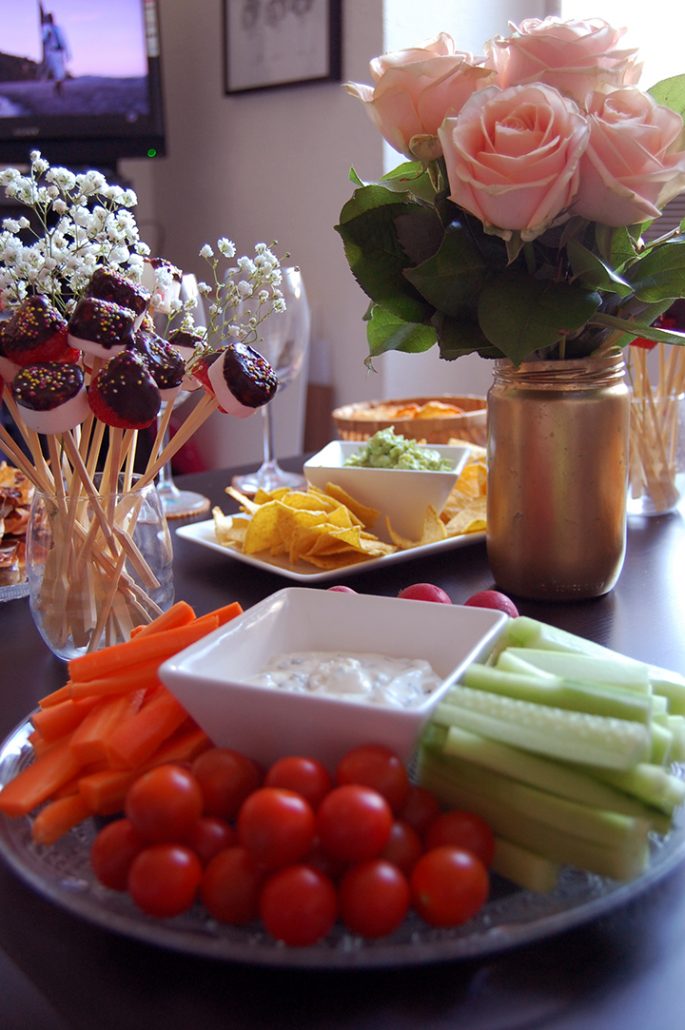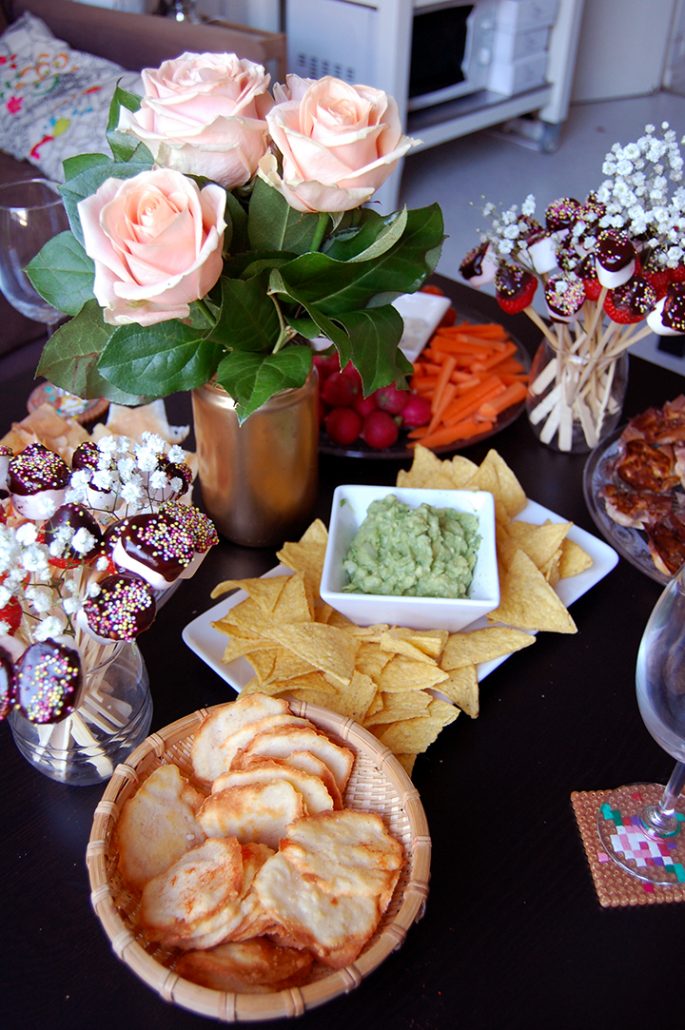 Il m’a fallut 3h de cuisine pour tout préparer et je dois vous avouer que quand je me suis posée dans mon canapé avec vue sur ma table basse j’étais ravie et mes amies contentes.