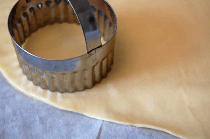 Aplatissez légèrement la pâte et à l’aide d’un emporte pièce découpez deux minis cercles.