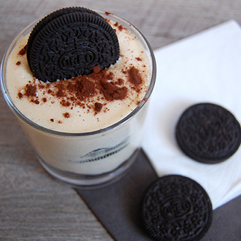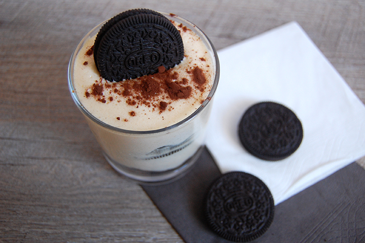 Ajoutez des Oréos émiettés (si vous n’avez pas tout mangé…comme moi) ou du cacao en poudre.