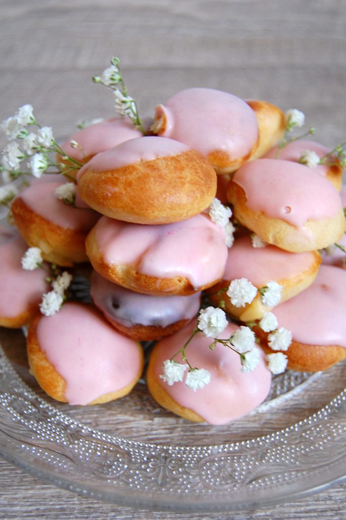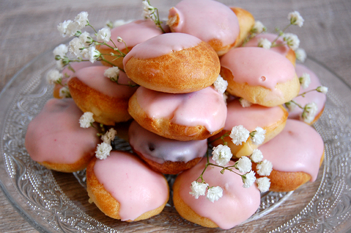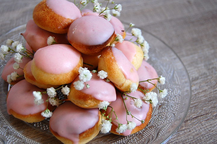 Aujourd’hui donc pas de pas à pas. Pour la recette des choux vous pouvez la retrouver dans mon précédent article ici, pour la crème pâtissière c’est juste ici et enfin pour le glaçage je dois reconnaitre que j’ai fait la feignante… J’ai voulu tester le glaçage Vahiné, 30sec au four à micro onde et 2 goutes de colorant rouge et hop le tour est joué.