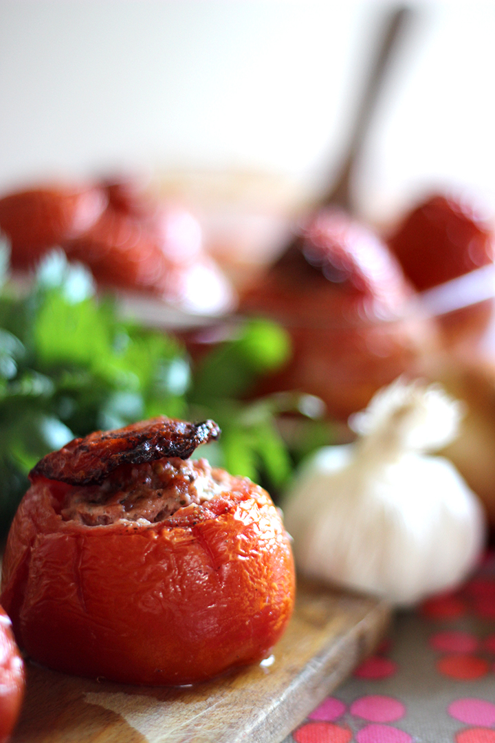 - N’hésitez pas à badigeonnez à nouveau vos tomates farcies de jus à la moitié de la cuisson pour éviter que le capuchon ne grille trop.