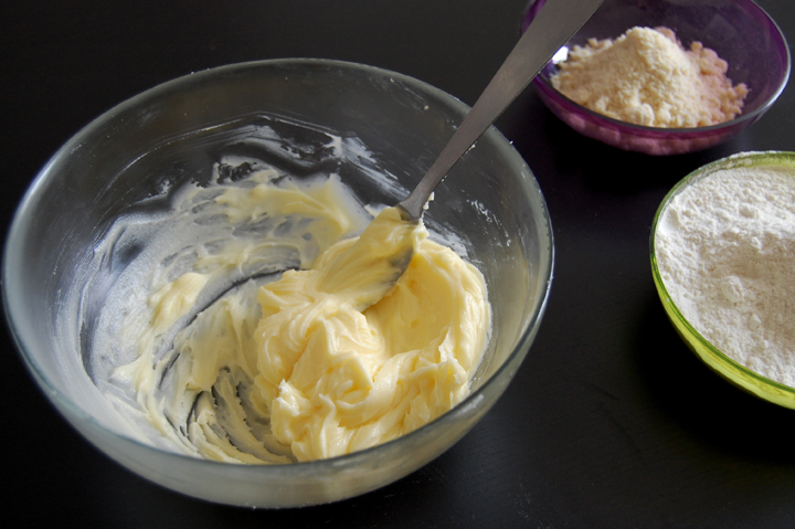 Mélangez le beurre mou avec le sucre glace. Personnellement je m’hésite pas à mettre les mains à la patte avant d’utiliser le fouet.