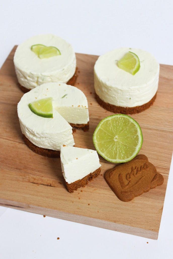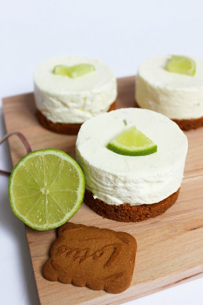 Sans cuisson au four ce Cheesecake est rapide à faire. Je l’ai fait au citron vert ce qui apporte beaucoup de fraicheur et en portions individuelles pour ne pas me retrouver avec un gros gâteau toute seule.