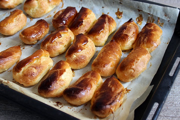 - Enfournez le tout pendant 20min. En fin de cuisson, laissez poser 10min, four éteint, pour que les éclairs ne dégonflent pas.