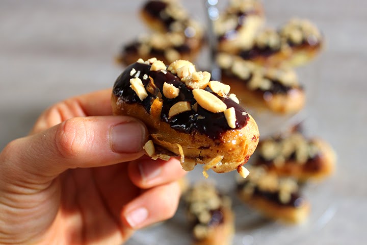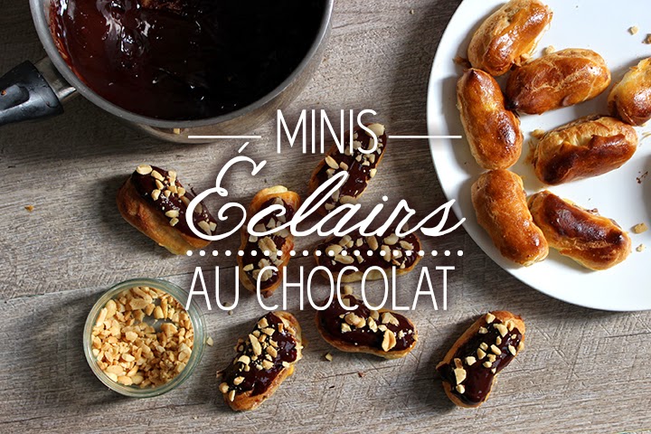 Je marchais en route pour faire mes courses et je cherchais donc une gourmandise sucrée, facile à manger lors d’un apéritif et donc de préférence individuel… Et la idée ! Minis éclairs au chocolat ! C’est joli, mignon, facile à faire et surtout délicieux !