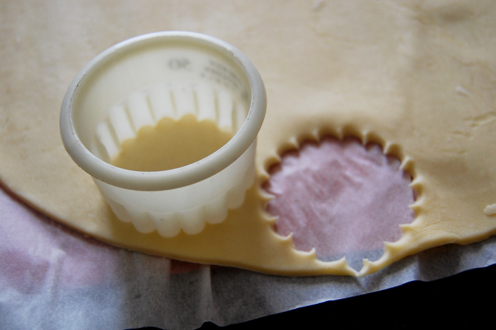 A l’aide d’un emporte pièce découpez la pate feuilletée et placez les sur la planche en silicone.
