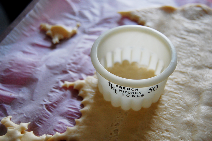 A l’aide d’un emporte pièce découpez la pate feuilletée et placez les sur la planche en silicone.