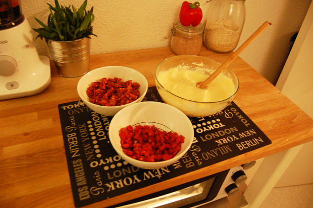 Pour bien débuter l’année et comme première gourmandise de cette année 2012 je vous propose la recette des muffins chorizo/poivron rouge que j’ai fait pour mon réveillon. Ils sont assez rapide et simple à faire. J’ai testé un glaçage salé en plus donc certains muffins se sont transformés en cupcake salés.