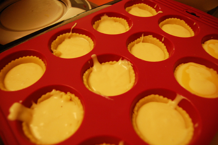 Ajouter un peu de pâte à muffins en déposant au centre une cuillère à café de crème au citron.