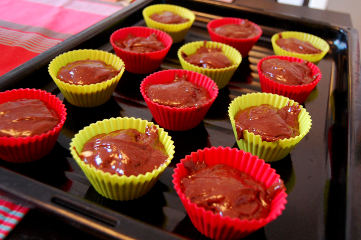Mettez une cuillère de la préparation dans des moules à muffin.