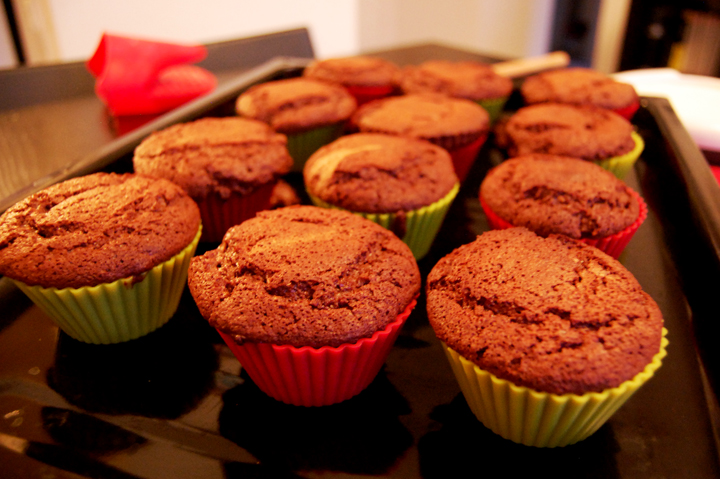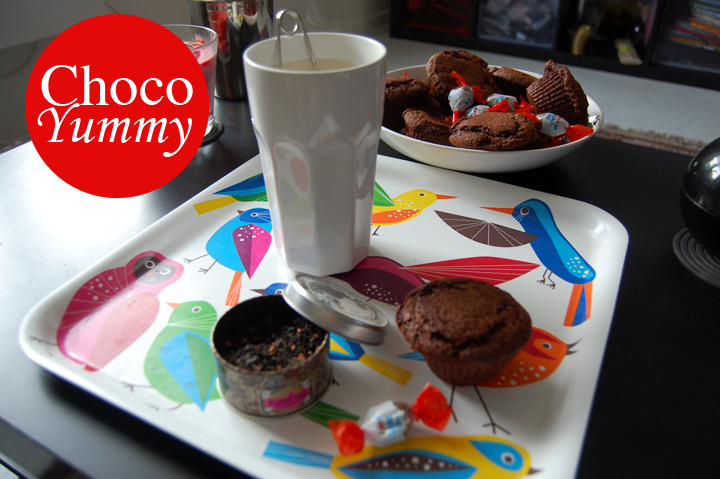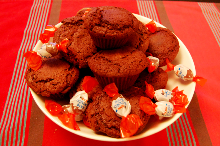 C’est bientôt Pâques et étant une adoratrice de chocolat j’ai décidé de faire pour la première fois des muffins au chocolat. Hummmm! Et pour un peu d’originalité j’ai décidé d’y glisser une petite surprise: un coeur en Schokobons. Comme toujours c’est une recette simple, rapide et délicieuse! Vous allez les adorer.