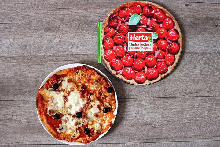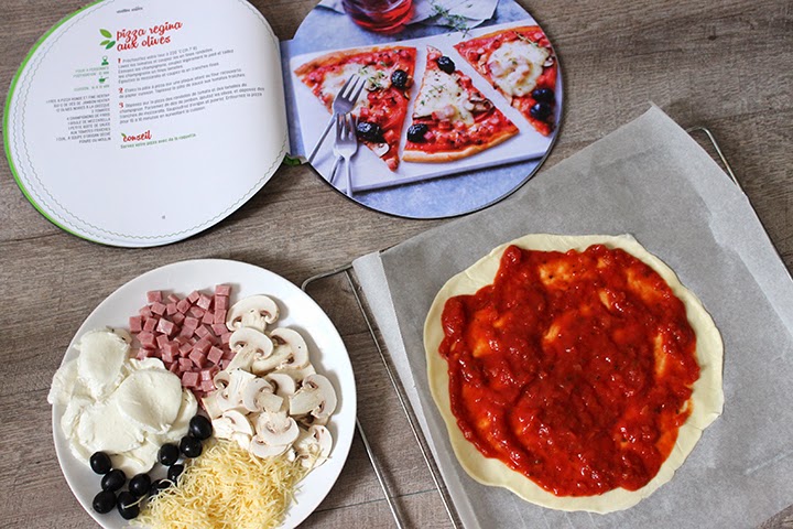 La plupart de mes outils de cuisine étant déjà rangés dans les cartons j’étais un peu limitée pour leur préparer des gourmandises. Ayant reçu le super livre de Tarte Herta, je l’ai feuilleté et la révélation ! Je leur ai préparé des pizzas Régina aux olives.
