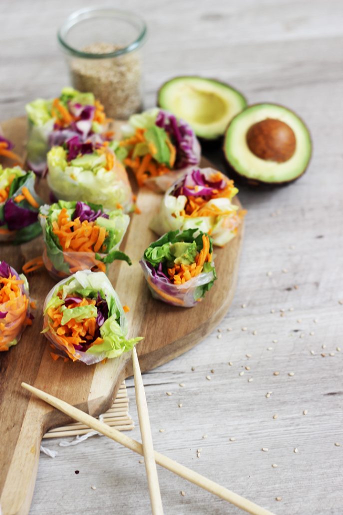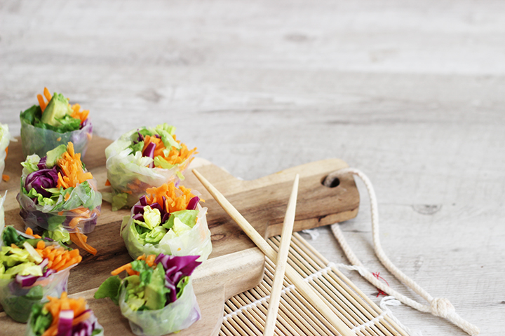- Coupez tous les ingrédients, humidifiez les feuilles de riz et montez vos rouleaux.